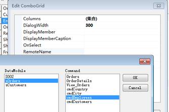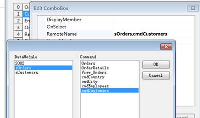 RemoteName資料源選擇sOrders的cmdCustomers。