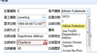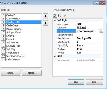 找到Columns的編輯器中的CustomerID,並將Editor修改為infocombobox,這樣這個欄位就是以combobox形式顯示了。
