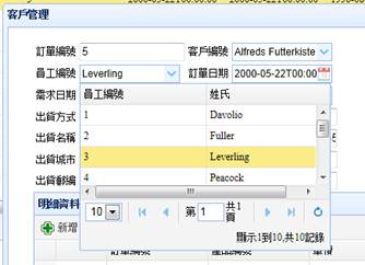 接下來我們再來設計一個ComboGird的欄位,請將EmployeeID的欄位類型設定為infocombogrid。