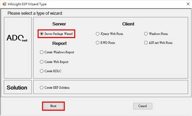 EEP Wizard選項,在打開的視窗中選擇 [Server Package