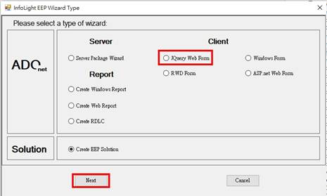 EEP Wizard選項,在打開的視窗中選擇 [jQuery Web Form]。