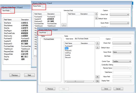// 透過不同樣板的引導,請依實際需求選擇所需要顯示的欄位後,點選 [Done] 即完成網頁的開發如下。