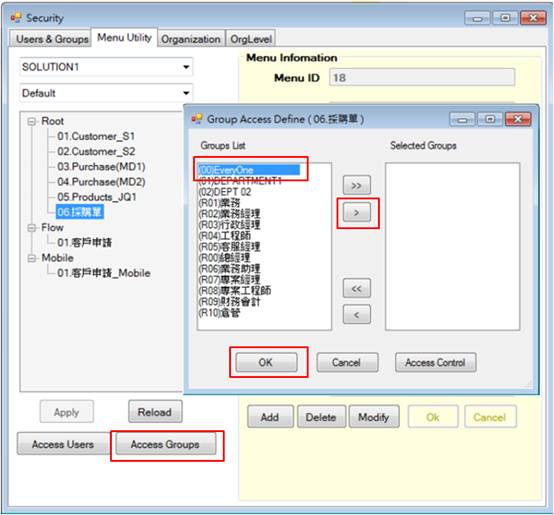 建立Server端採購單資料表à 掛載資料表à Web程式設計à 功能表建立與權限設定