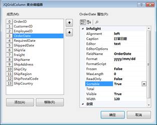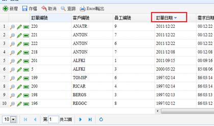 同時,我們將OrderDate的Sortable設定為true,這樣這個欄位就可以排序了。