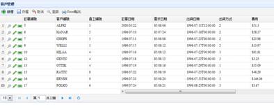 下面,我們將這兩個設定後保存頁面,重新運行OrderWizard,可見OrderDate的Caption被點擊時,畫面會相應進行排序,同時前三個欄位為凍結不可通過scrollbar拉動。
