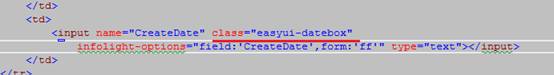 日期元件作爲最基本的元件,在JQuery中,我們只需要找到對應需要顯示的日期元件的欄位,將它的class變換為easyui-datebox即可。