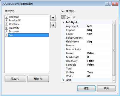 回到bOrders1.aspx中,找到Detail所在的JQDataGrid,找到Columns的屬性,打開編輯器。