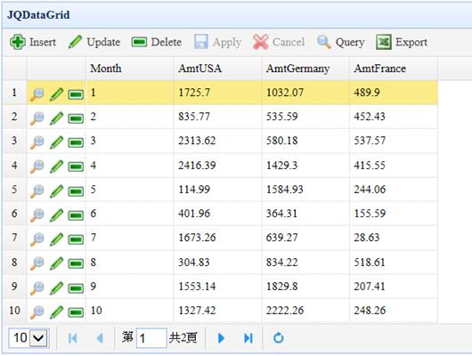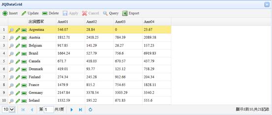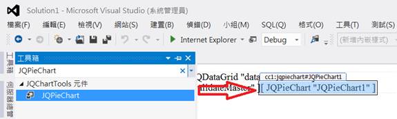 可以依照Step2的步驟用Wizard產生一個新的頁面,或是在前面產生的頁面直接加入新的JQDataGrid及JQLineChart元件,JQDataGrid資料來源為ViewLineChart。