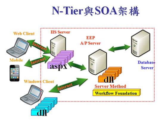 EEP採N-Tier的設計模式,分為以下三層結構 :