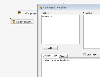 Step5> 現在我們需要設定報表的資料源,這裡選擇前面添加的cmdProducts。