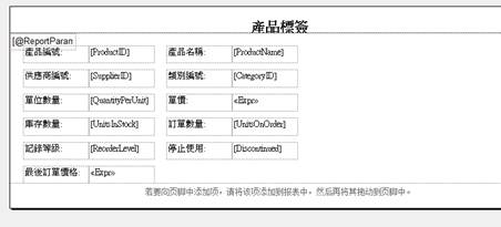 在開始報表設計前,先將sOrders這個Server中添加一個InfoCommand。並將它命名為cmdProducts,將這個InfoCommand連結到Products的表作爲下面例子的資料來源。修改後重新建置sOrders。