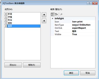 Step7> 打開前面6-10產生的bProducts1畫面,點開畫面中DataGrid的ToolItems屬性。在打開窗口中點擊Add添加一個按鈕,按照如下設定,在OnClick時,呼叫exportReport方法。