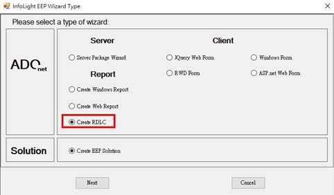 Step1> 打開EEPWizard選擇Create RDLC,點擊Next。