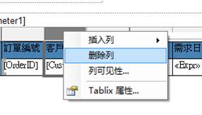 Step9> 然後,將滑鼠點到訂單編號後面的客戶編號整個column,右鍵滑鼠選擇刪除列。