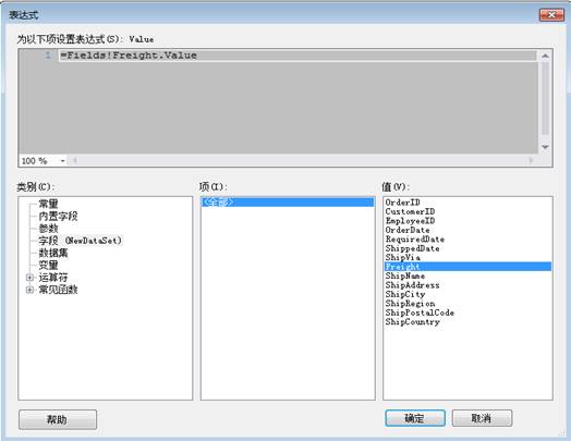 然後在字段(欄位)->全部->Freight雙擊,讓它產生在表達式的設定部分。這樣點擊確定完成修改。