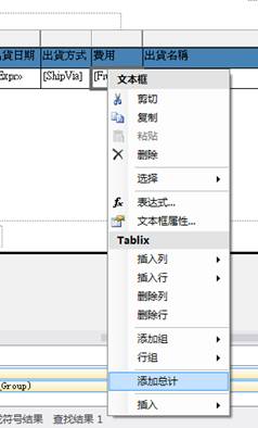 接著,在Freight的顯示框中,右鍵滑鼠選擇添加總計,這樣,對於群組的運費會進行自動的加總功能。