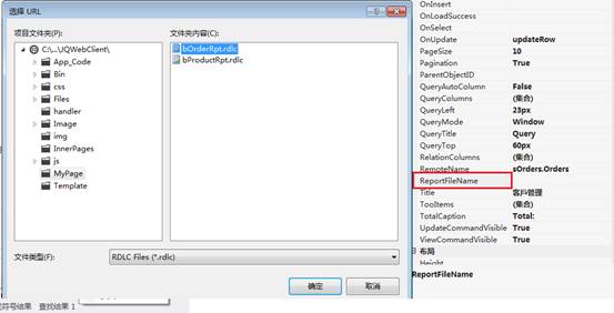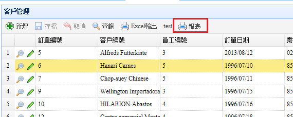 最後,回到bOrders1這個網頁,我們將JQDataGri的ReportFileName設定為前面已經產生的bOrderRpt報表。