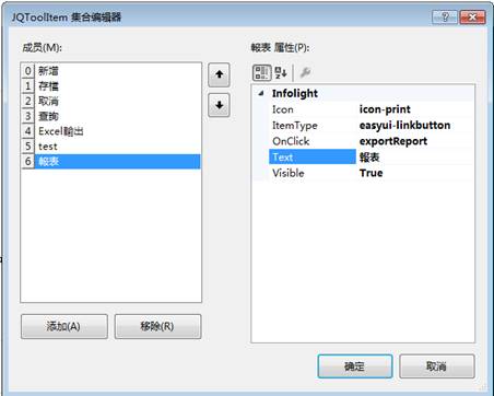 同時,在ToolItems裡面添加一個報表的按鈕,設定如下圖: