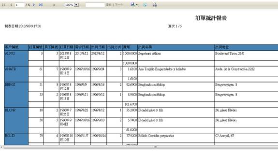 這樣,在重新run訂單這個Form的時候,點擊報表按鈕,系統自動會在網頁上顯示出以CustomerID為Group的報表。