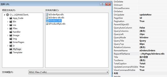 Step5> 要記得在bOrders1的網頁上,將JQdataGrid的ReportFileName更換成上面產生的bOrders.rdlc。