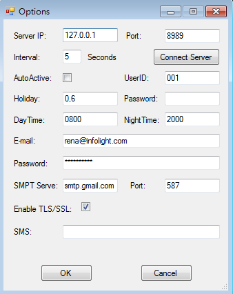 Server IP:設定連接的Server的IP位址(如果這裡為空,那麼程式會自動去讀取 Scheduling.exe.config裡面的那個IP)。