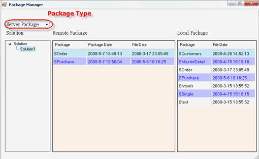Local Package:顯示本地Server或Client的所有dll,如要進行上傳更新到遠端的Server時,只需要選中Local所需更新的DLL程式,拖拉到Remote Package區域即可進行上傳動作。