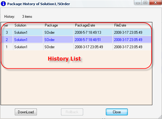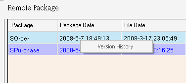 Remote Package:遠端所要更新的列表與紀錄,可以選中一筆更新記錄右擊滑鼠,查看該更新程式的歷史記錄,說明如下: