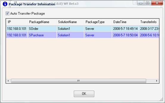 【用途】:用於顯示更新的Package訊息列表,每次更新後會顯示在Grid裡面。開啟途徑:File->Package Transfer Info。