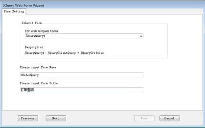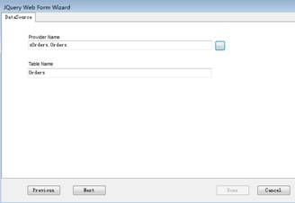 同樣,我們在開始Wizard開發時,需要選擇開發類型,產生的網站位置,這裡請參照上一節的設定就不重複說明了。在選擇模板時,請選擇JQueryQuery1,同時我們將產生的網頁命名為bOrdersQuery。