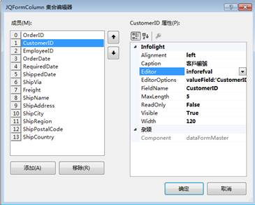 找到Columns編輯器中的CustomerID,並將Editor修改為inforefval,這樣這個欄位就是以refval形式顯示了。