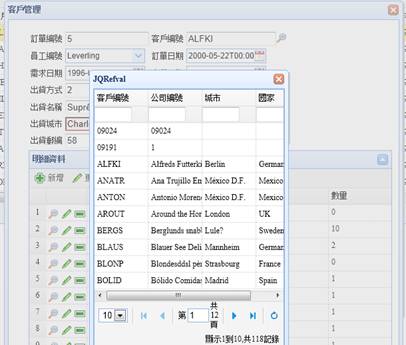 Refval開窗選單元件,用戶通過按鈕打開一個grid,同時可以查詢每個欄位上的資料。