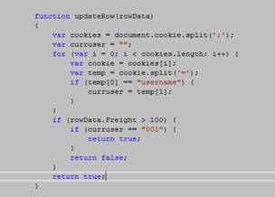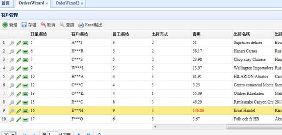 在資料的實際編輯時,程式會被要求,某些資料在符合條件時,可以被編輯,否則不可編輯。這個功能,我們可以根據js的程式通過動態的方法來實現。這個例子我們來做一個在登入用戶為001時,當運費(Freight)大於100時,資料才可以被編輯。