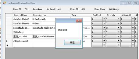 在AccessControlForUser畫面中將JQSecColumns1的Enabled設定為N。最後點擊Update按鈕更新修改。