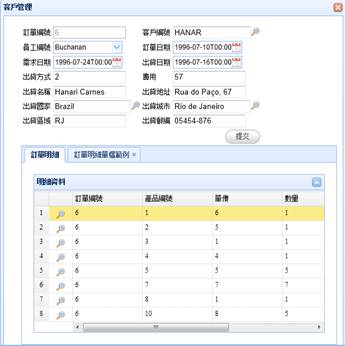 設定完成後,在run程式後會發現Master的新增按鈕被隱藏了。同時Detail的新增、修改以及刪除按鈕也被隱藏。