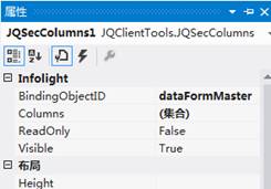 首先在畫面中貼入一個JQSecColumns,請注意,這個元件也同,將它的BindingObjectID設定為dataFormMaster表示控制Master編輯時的欄位。