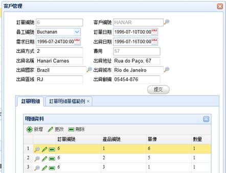 重新以002來登入後,編輯資料會發現客戶編號以及費用是只讀的狀態。
