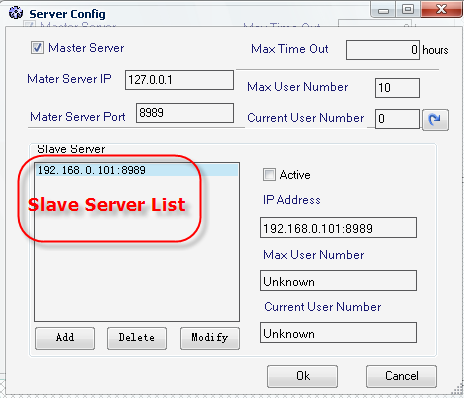 ⑻ Current User Number:該Slave Server的目前線上的用戶數,只能顯示無法設定。