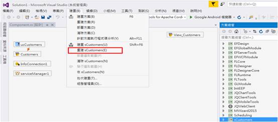 若以下Server端的程式有異動請使用工具列 [建置] -> [重建sCustomers] 完成sCustomers.dll的建置。(ps:建置Server端時請先將 EEPNetServer程式關閉待建置完成後再開啟)