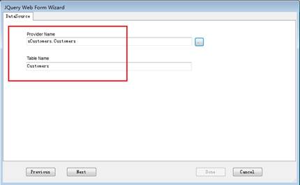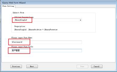 同樣,我們在開始Wizard開發時,需要選擇開發類型,產生的網站位置,這裡請參照上一節的設定就不重複說明了。在選擇模板時,請選擇JQuerySingle2,同時我們將產生的網頁命名為bCustomers2。