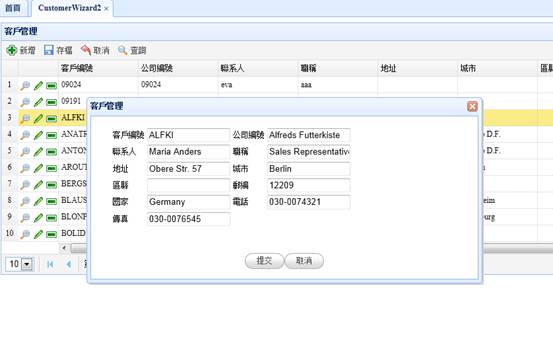 前面一節的內容介紹了最基本的在Grid上直接編輯的單檔模板,下面介紹的模板,它是通過彈出畫面的方式來編輯資料。
