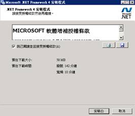 Step2>  下載完畢後,點開Framework4.0的安裝程式。請按照安裝程式的提示訊息進行安裝。
