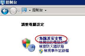 Step3>  從這個步驟開始,下面就開始安裝Windows Server2008中的IIS首先,在Windows的開始選單中找到控制台-〉系統及安全性選項。