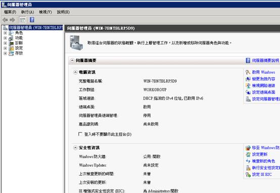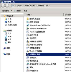 Step5>  系統管理工具中找到伺服器管理員將其打開。下放圖二為打開後的伺服器管理員