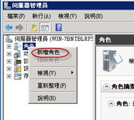 Step6>  伺服器管理員的左下方找到角色,右擊滑鼠點擊新增角色