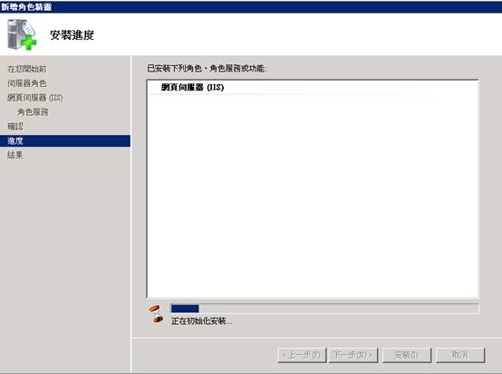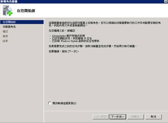 Step7>  接著,跟著新增角色精靈來完成IIS的安裝,在開始畫面點擊下一步
