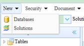 - New:下包括兩項Databases資料庫、Solutions專案管理