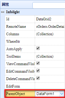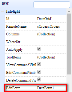 Step17> 最後設置DataGrid1的EditForm屬性為DataForm1作為主檔編輯元件的關聯。